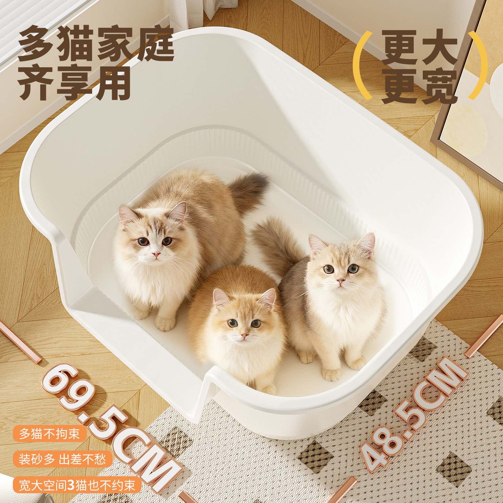淘猫砂盆大容量超大号防外溅全开放式半封闭厕所特大猫沙盆一体式