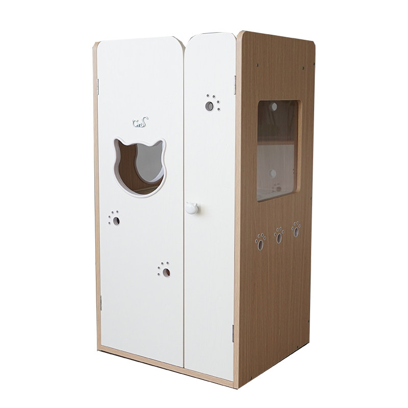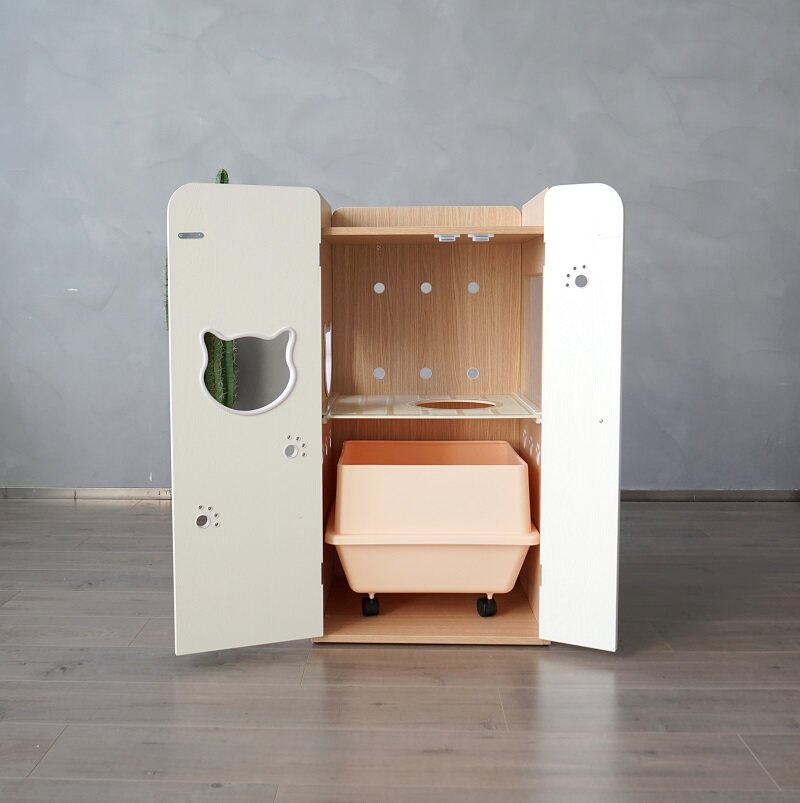 CatS猫家具竖厕所二代拼色设计木制全封闭防外溅猫砂盆A7,专为注重品质与美感的养猫家庭打造。采用环保实木材质,结构稳固耐用,搭配时尚拼色外观,轻松融入现代家居风格。全封闭式设计有效防止猫砂外溅,保持地面整洁,同时提供私密如厕空间,提升猫咪安全感。顶部设有通风孔,确保空气流通,减少异味积聚。底部加高防漏边,搭配可拆卸门帘,清洁更便捷。A7型号尺寸适中,适合多猫家庭或空间有限的居室。全国包邮,品质保障,让猫咪享受舒适如厕体验的同时,也为家居增添一抹温馨与格调。
