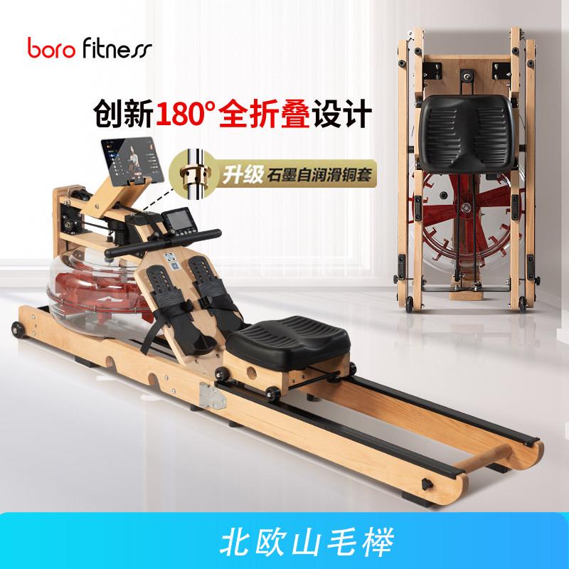 淘宝水阻划船机有氧健身器材大阻力折叠款木制静音工厂供应家用划船器