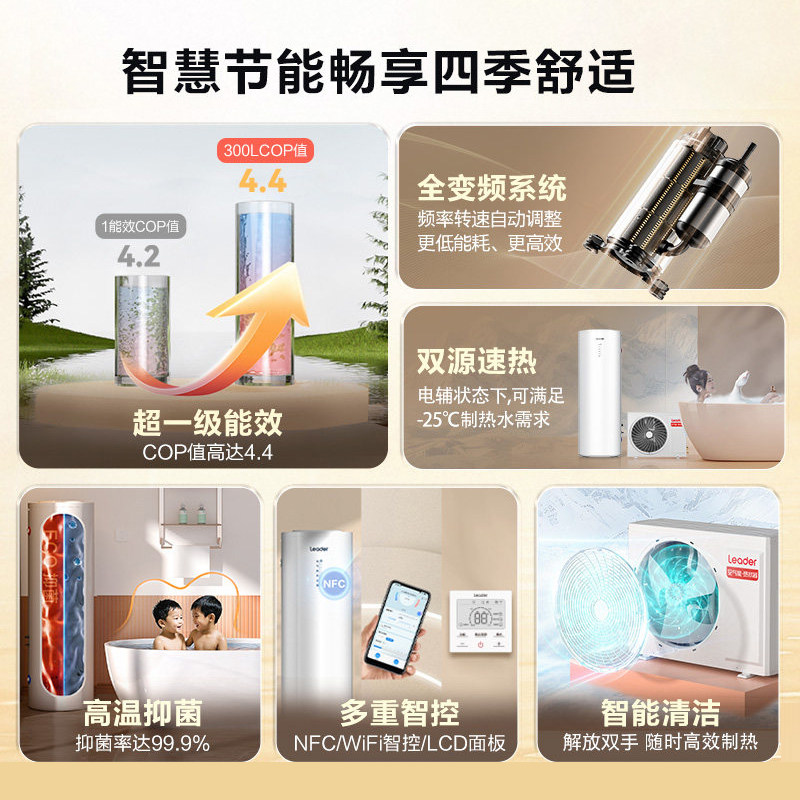天海尔空气能热水器家用变频一级能效零冷水套装200升300升500升