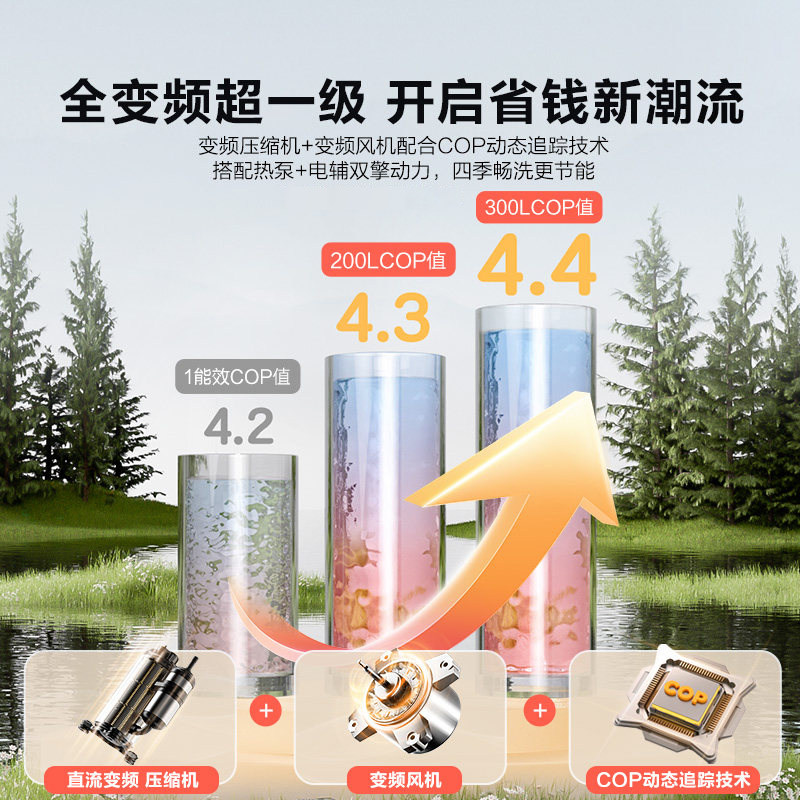 天【国补15%】海尔空气能热水器300升家用大容量热泵全变频速热节能
