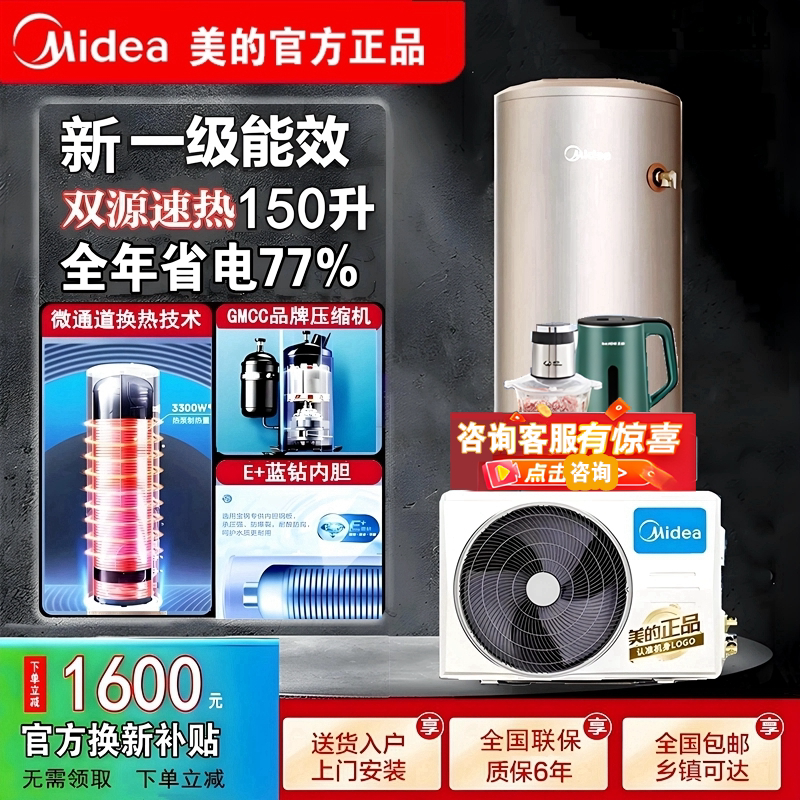 淘宝美的空气能热水器150升200升300l家用睿泉变频一级能效空气源热泵