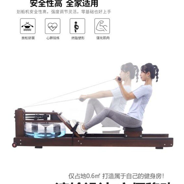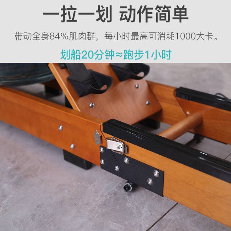 可定制水阻划船机 有氧运动家用健身器材 橡胶木水阻划船器原木色