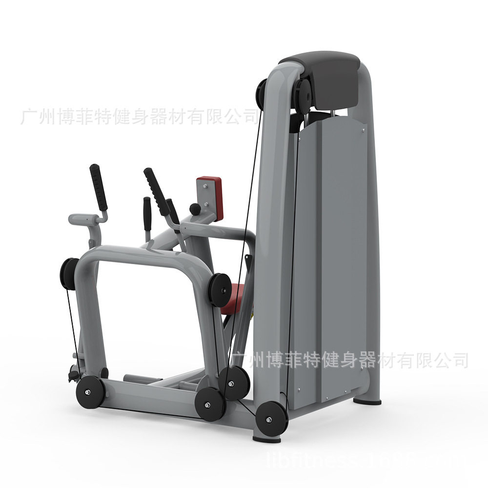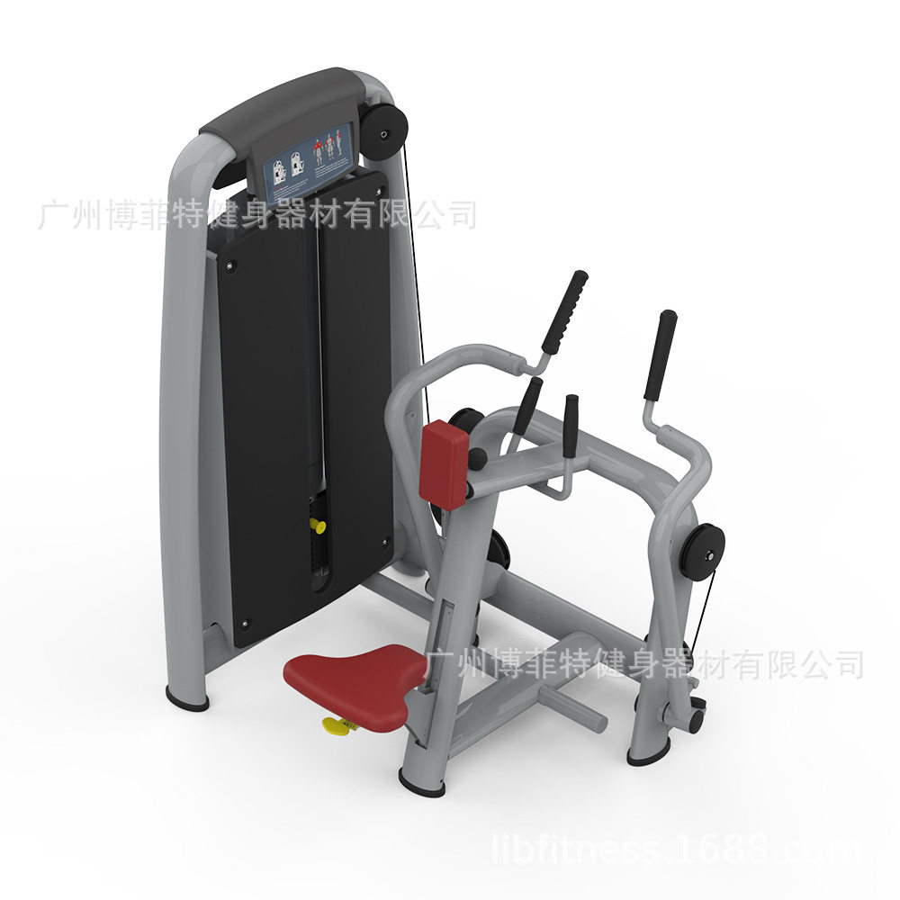 坐式拉背训练器是健身房常见的背部塑形器械,专为强化背阔肌、斜方肌及肩后束设计。使用者坐姿固定,通过调节配重片阻力,双手拉动握把至胸前,模拟划船动作,精准刺激背部肌群,同时减少腰部代偿,安全性高。该设备配备符合人体工学的靠垫与脚踏,确保训练姿势稳定,适合不同身高人群。无论是增肌、改善体态,还是提升上肢拉力,坐式拉背机都能提供高效、可控的训练体验,是背部力量训练的理想选择,广泛应用于家庭及商用健身房。