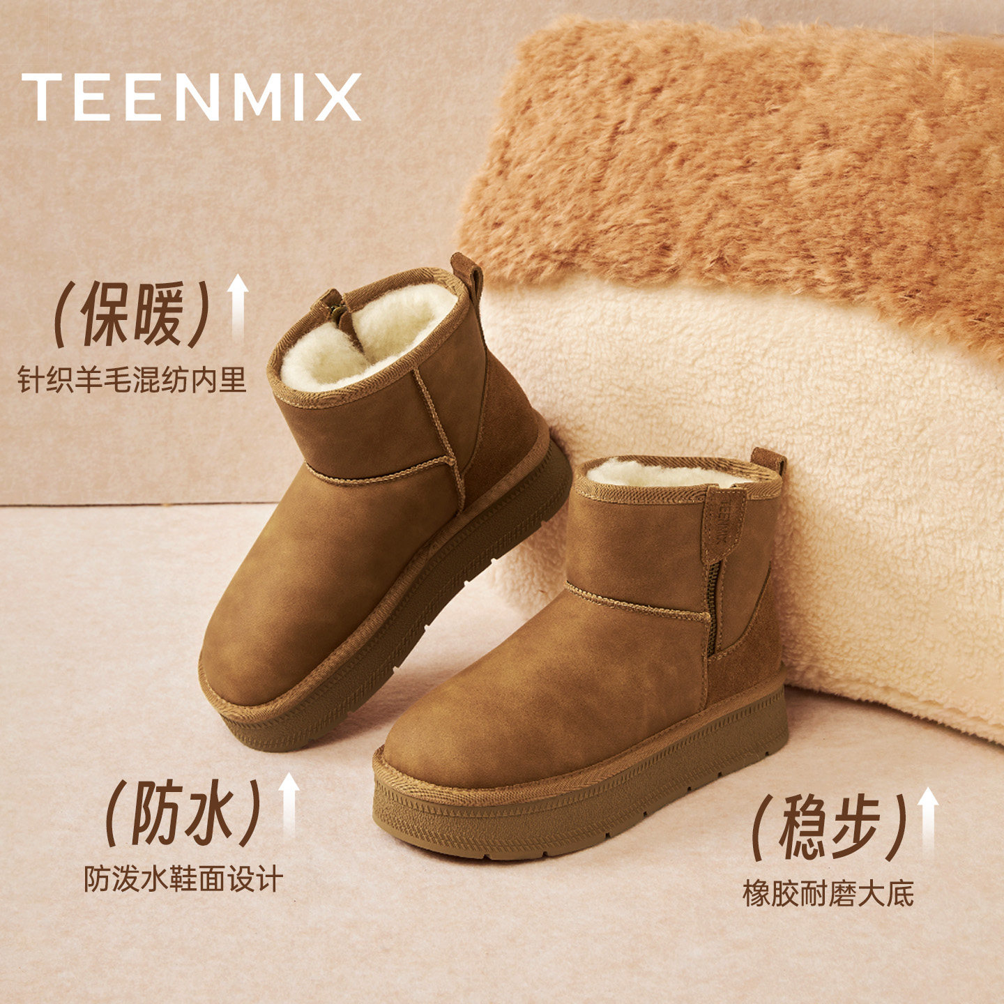 天美意厚底增高加绒保暖雪地靴(BM272DD5)是冬季女性休闲穿搭的理想之选。采用优质绒面材质,触感柔软,外观时尚百搭。内里加厚加绒设计,锁温保暖,有效抵御严寒,适合雪地、雨雪天气穿着。厚底增高设计不仅提升整体造型感,还带来舒适行走体验,兼顾美观与实用。短靴版型贴合脚踝,搭配牛仔裤、打底裤或裙装皆宜,轻松打造冬日潮流look。防滑耐磨橡胶大底,增强抓地力,行走更安全。轻便耐穿,是冬季出行、通勤、户外活动的贴心伴侣,展现温暖与时尚并重的女性魅力。