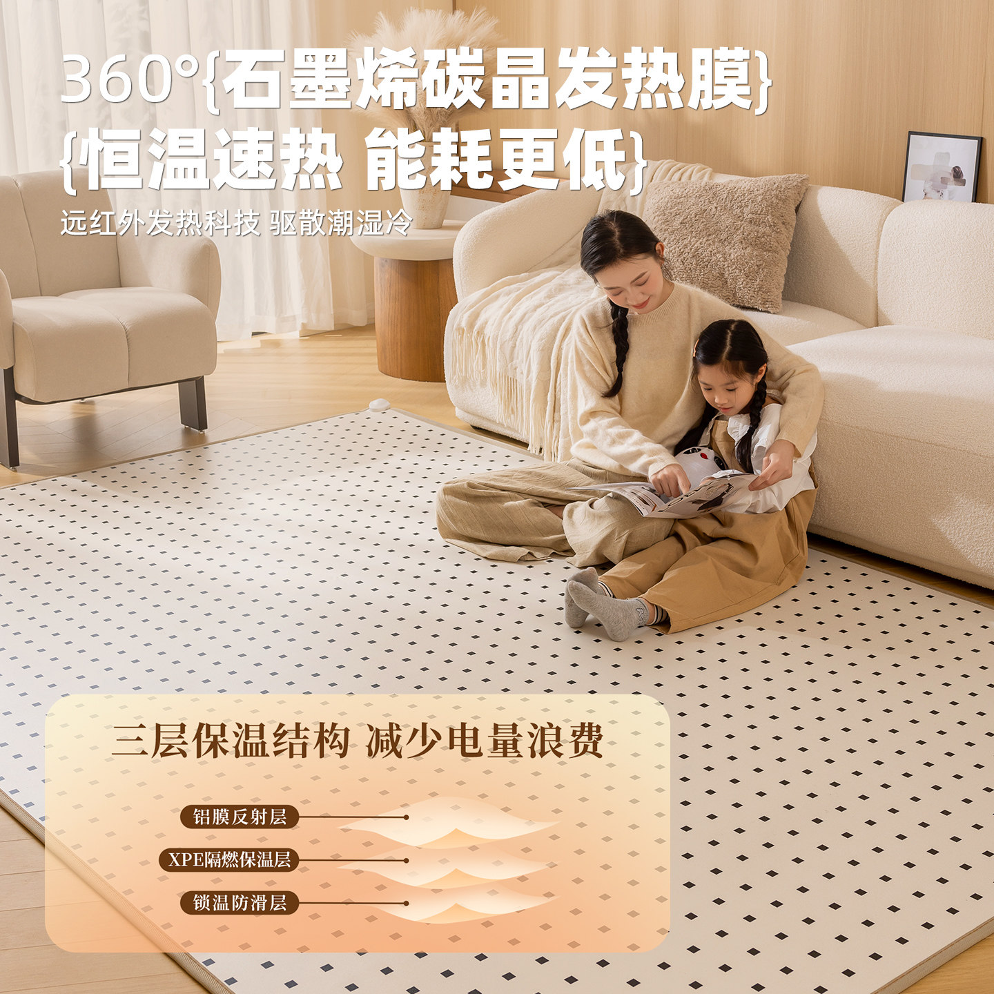 天三顺暖润石墨烯碳晶地暖垫儿童房发热电热地垫加热地毯地热垫家用
