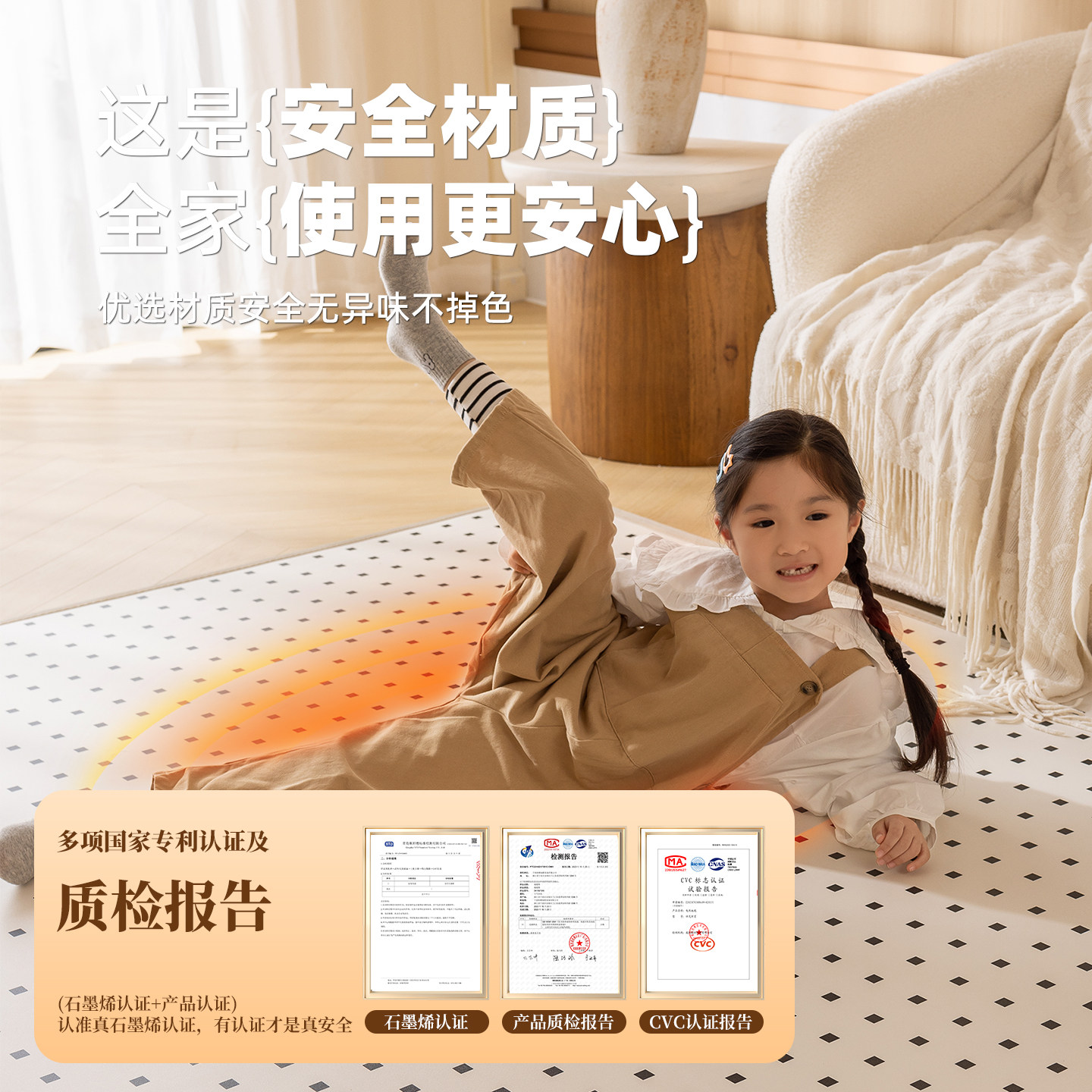 三顺暖润石墨烯碳晶地暖垫儿童房发热电热地垫加热地毯地热垫家用