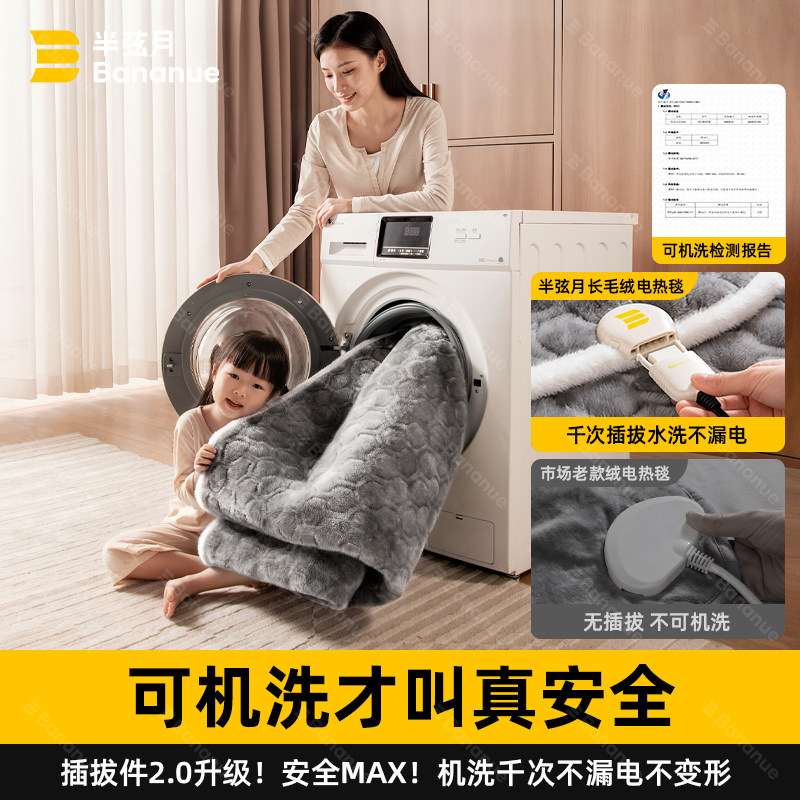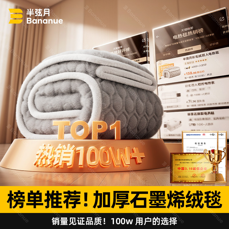 天猫半弦月石墨烯电热毯2026新款正品旗舰店双人双控调温开关电褥子暖