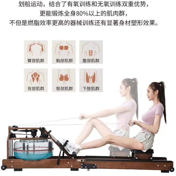 淘宝家用折叠智能水阻划船机健身房商用木质划船器实木双轨水阻划船机