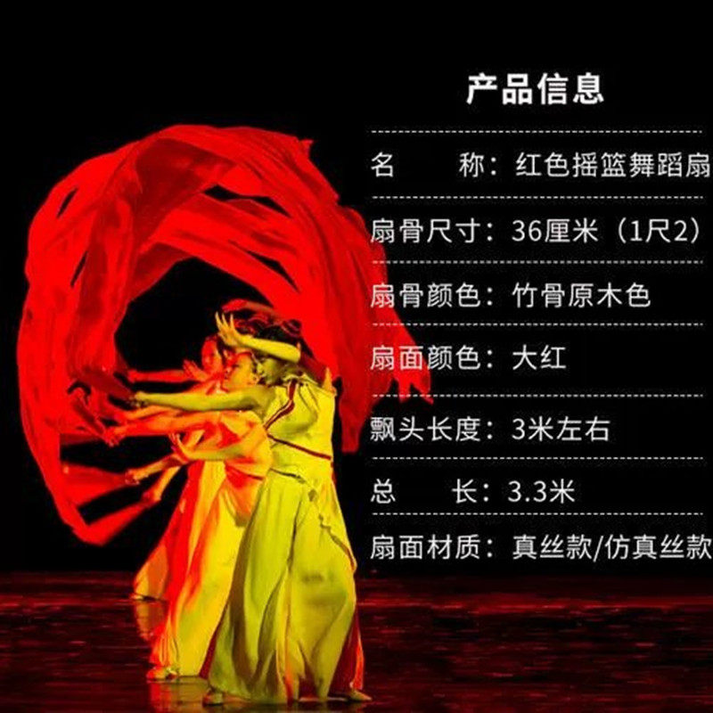 淘宝红色摇篮长绸扇加长跳舞扇子纯大红双面舞蹈扇长扇子真丝演出道具