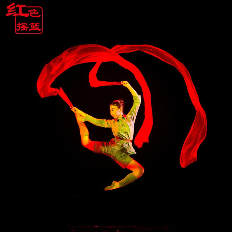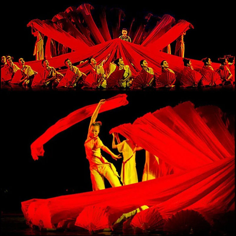 淘舞蹈丝巾纱巾专用大红色专用道具跳舞中国红年会舞台芳华绒花同款