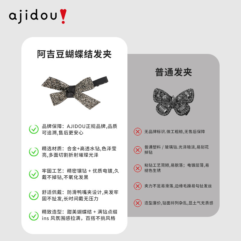 天猫阿吉豆蝴蝶结发夹边夹女款侧夹发饰高级感饰品头饰鸭嘴夹水钻抓夹