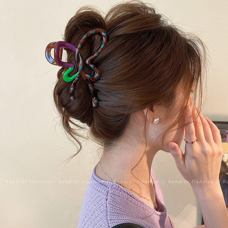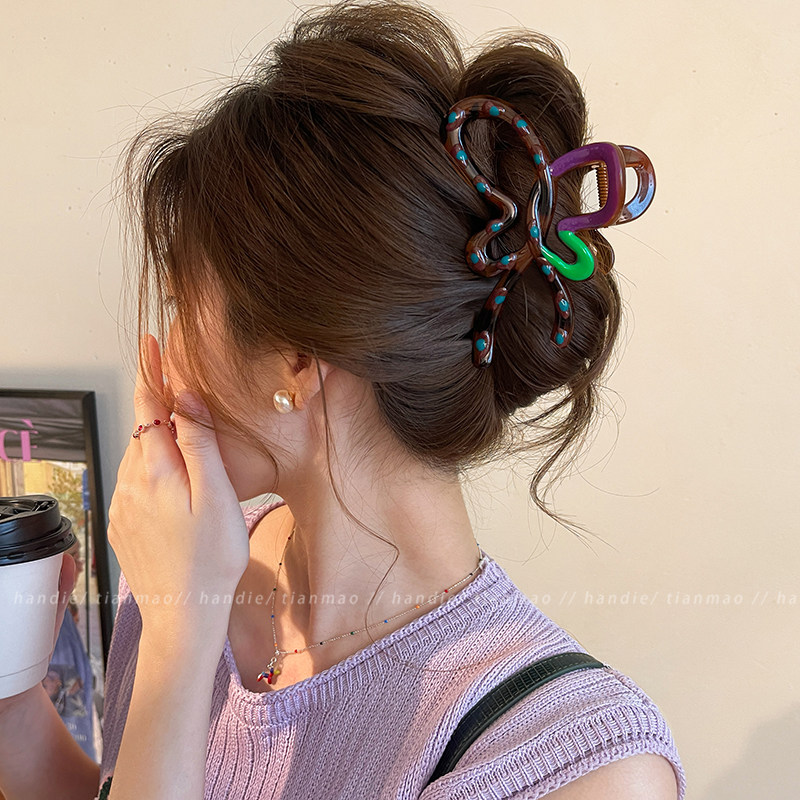 天猫高级感撞色波点蝴蝶结抓夹女2026新款后脑勺鲨鱼夹发量少发夹头饰
