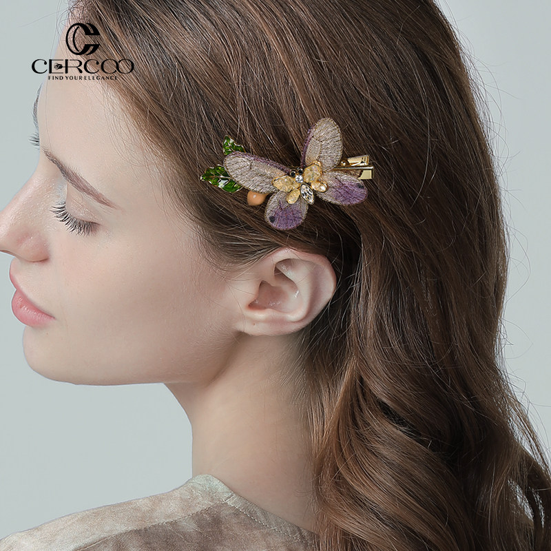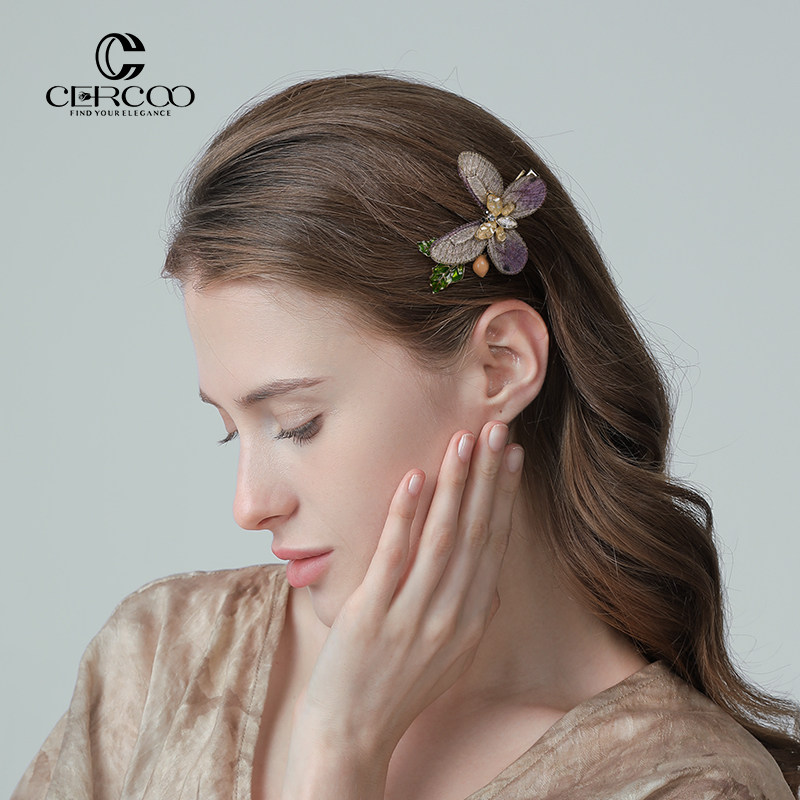 Cercoo/奢蔻异域蝴蝶卷手工刺绣灵动捏夹盘发侧夹碎发夹轻奢发饰