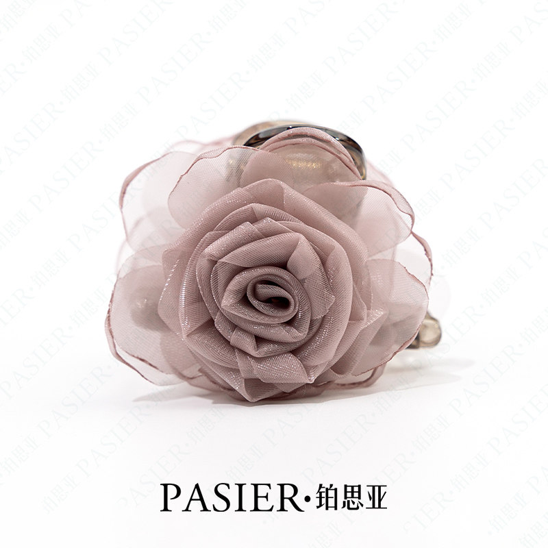 天猫铂思亚玫瑰之恋发夹女2026新款甜美风花朵抓夹优雅气质鲨鱼夹头饰
