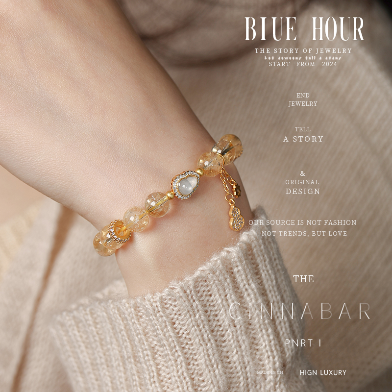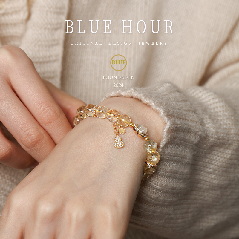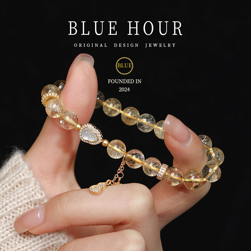 天猫Bluehour天然黄水晶手链女轻奢小众招财运转手串高级感金发晶手饰
