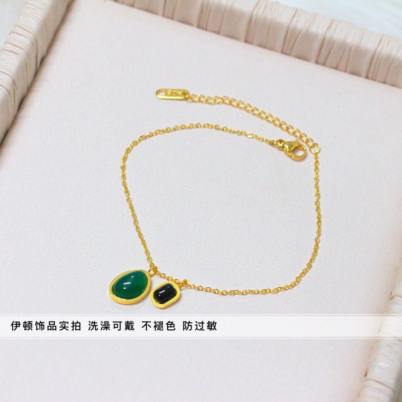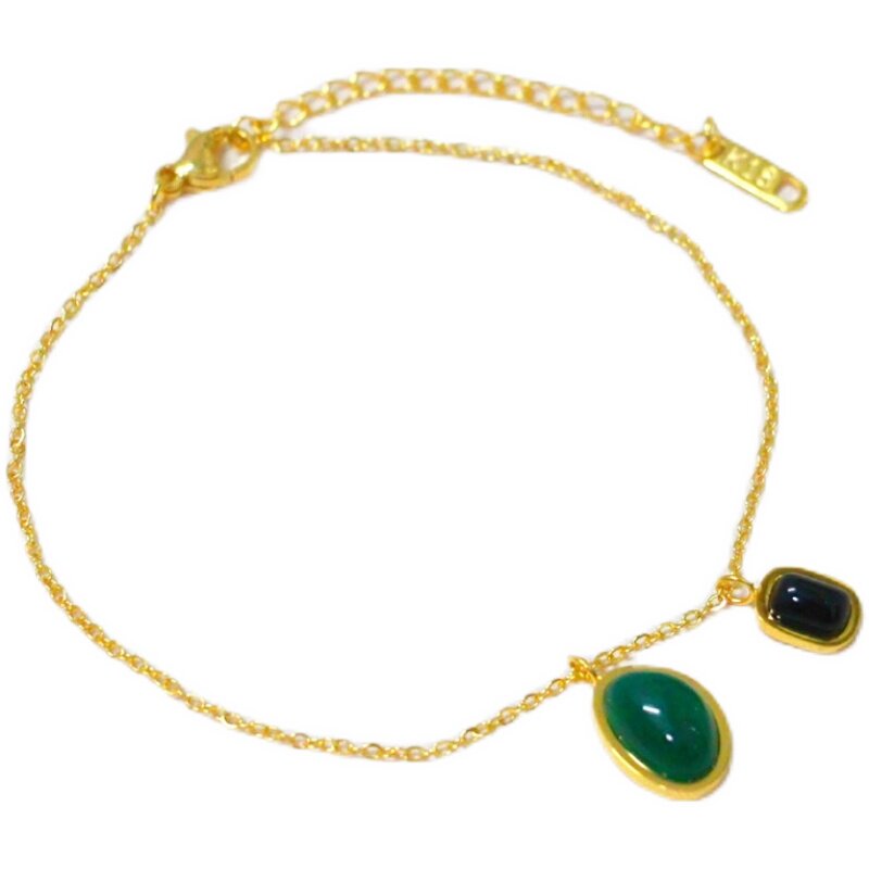 淘宝【洗澡不用摘】新款钛钢高级感小众设计绿黑天然石脚链 脚饰