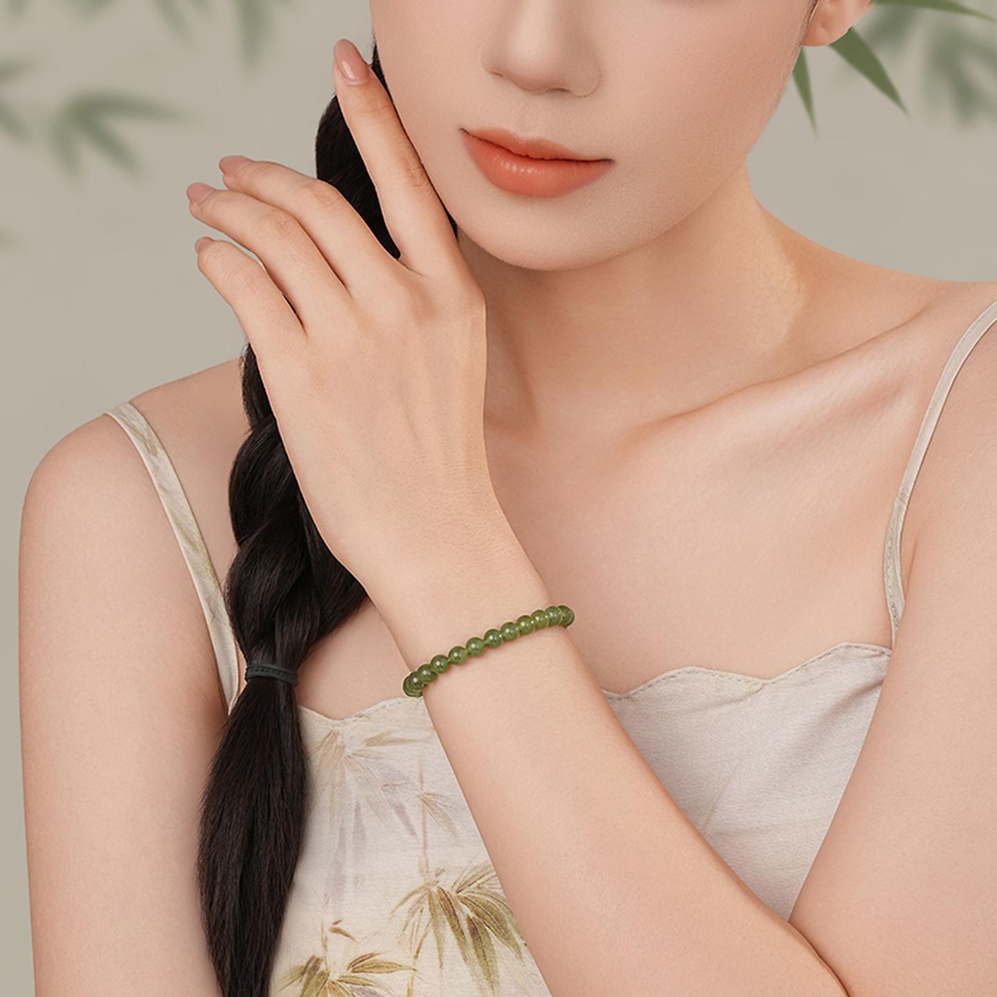 天若华珠宝予恩=菠菜绿和田玉碧玉手链女玉石弹力手串手饰礼物定制