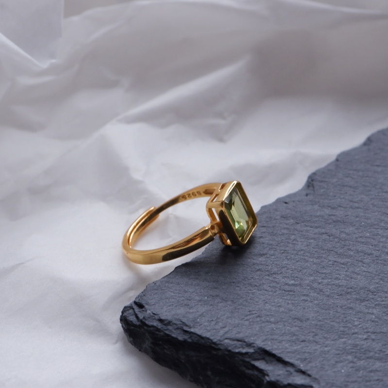 淘宝天然绿橄榄石戒指高级感方糖戒指女水晶宝石彩宝长方形珠宝手饰金