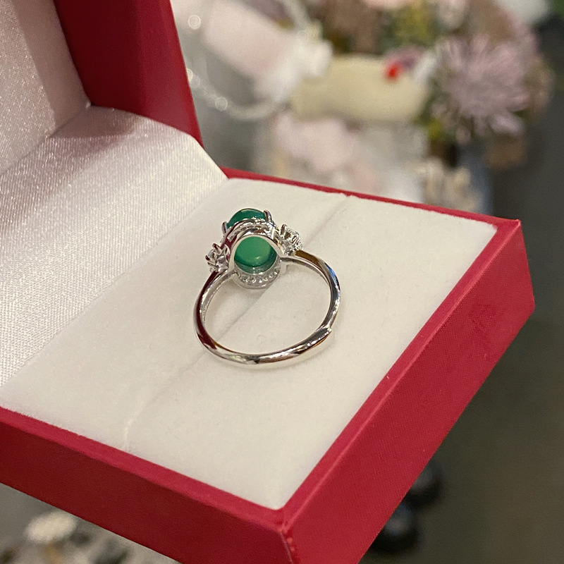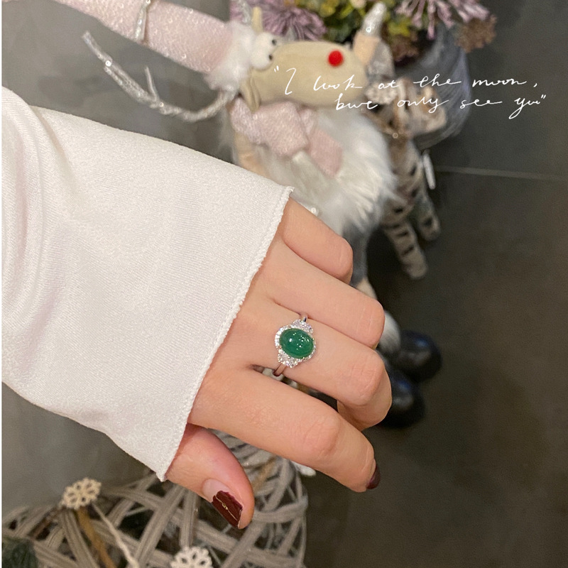 淘宝925纯银祖母绿玉石戒指女手饰绿玉髓通体银可调节指环送妈妈礼物