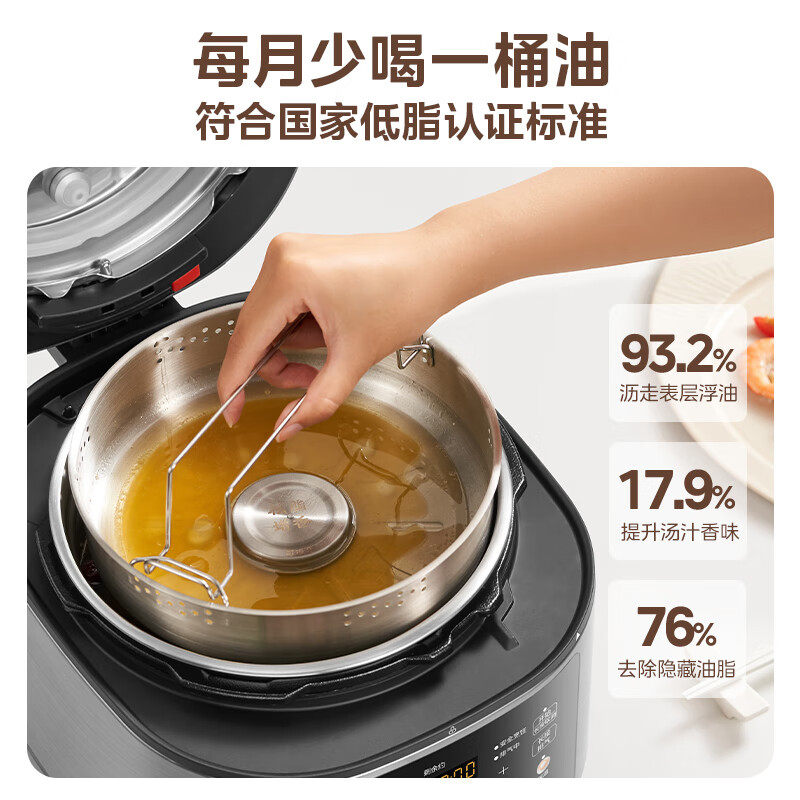 美的低脂浓香电压力锅,5升大容量设计,满足全家日常烹饪需求。采用0涂层不锈钢内胆,安全健康,耐用易清洁,避免涂层脱落隐患。创新低脂浓香技术,通过精准控压与智能加热,有效减少食物脂肪含量,保留食材原汁原味,口感更香浓。支持多种烹饪模式,一锅多用,可炖汤、煮饭、焖肉、蒸菜等,高效省时。配备智能预约与保温功能,使用便捷。高压快煮,锁住营养,让美味与健康兼得。简约外观搭配人性化操作界面,是家庭厨房的理想之选,轻松开启健康低脂新生活。