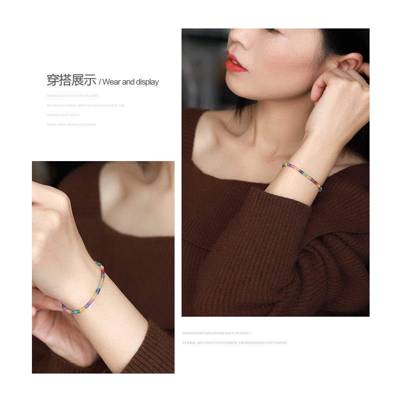 原创复古文艺糖心玛瑙手链女 简约小众设计珠子手饰 个性双圈手串