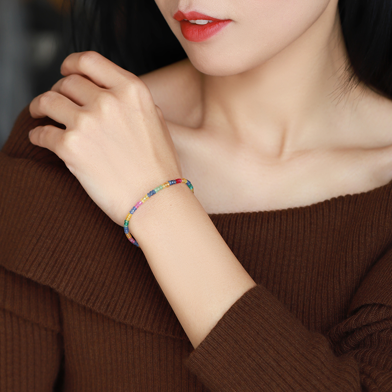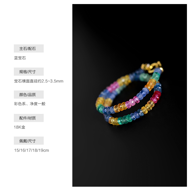 天猫若华珠宝彩虹糖 彩色蓝宝石手链女18K金彩宝手串彩金手饰礼物定制