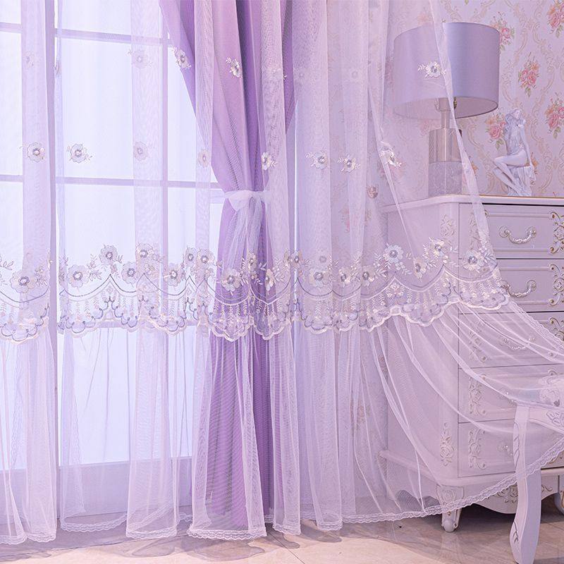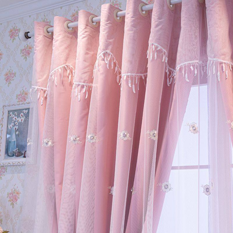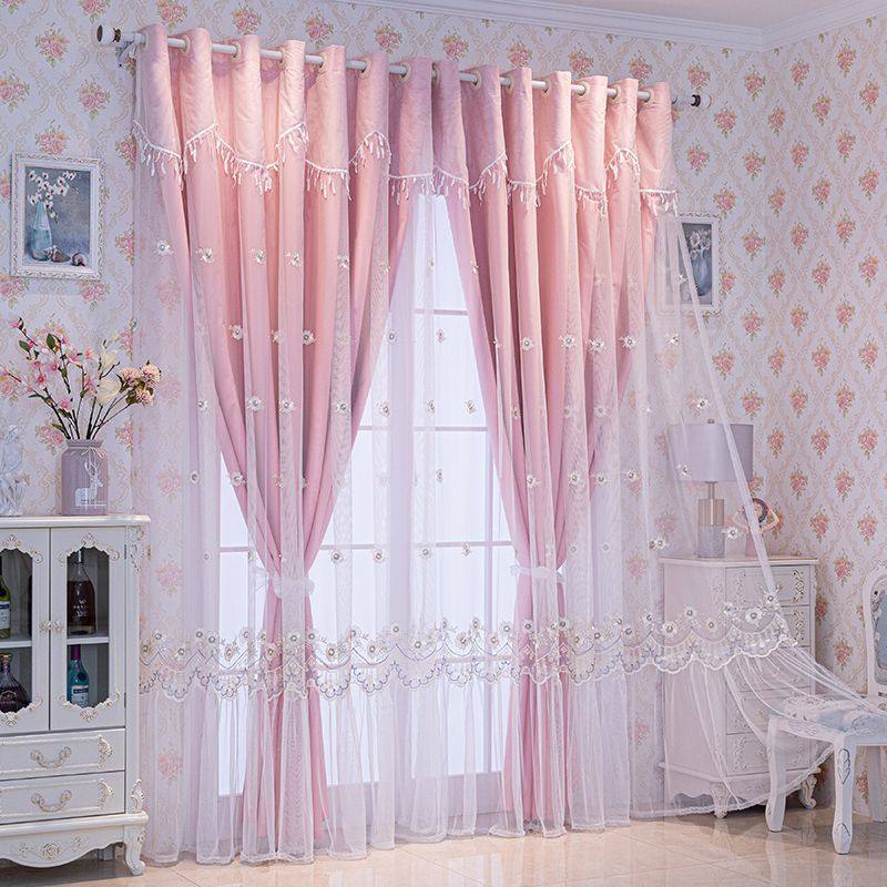 淘艾薇 法式浪漫珍珠花朵纱 重工刺绣少女心窗纱卧室纱帘窗帘纱定制