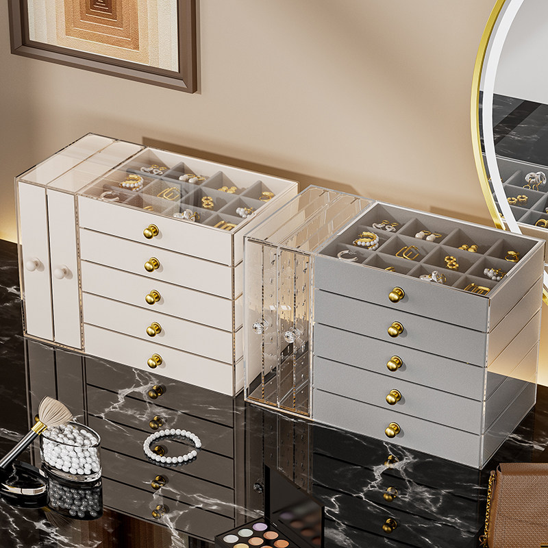 首饰收纳盒高档精致新款抽屉式项链耳钉多层大容量耳环手饰品盒子