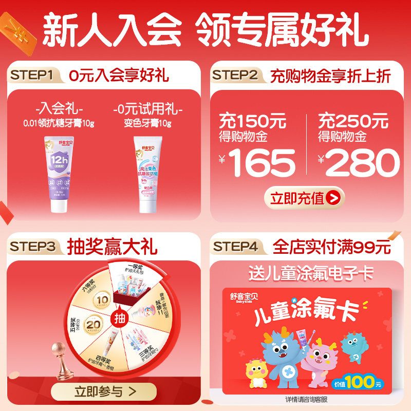 天【交个朋友】舒客宝贝防蛀牙膏+修护牙膏2-12岁含氟