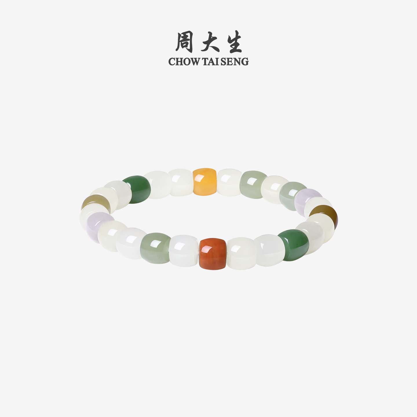 天猫周大生和田玉多宝手串玉石手链彩色和田白玉手饰生日礼物送女朋友