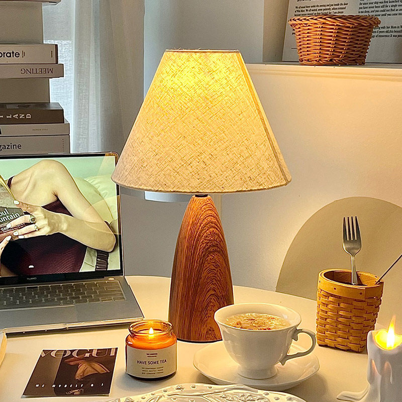 淘宝侘寂风床头灯胡桃木色中古风触摸智能语音声控台灯卧室复古怀旧
