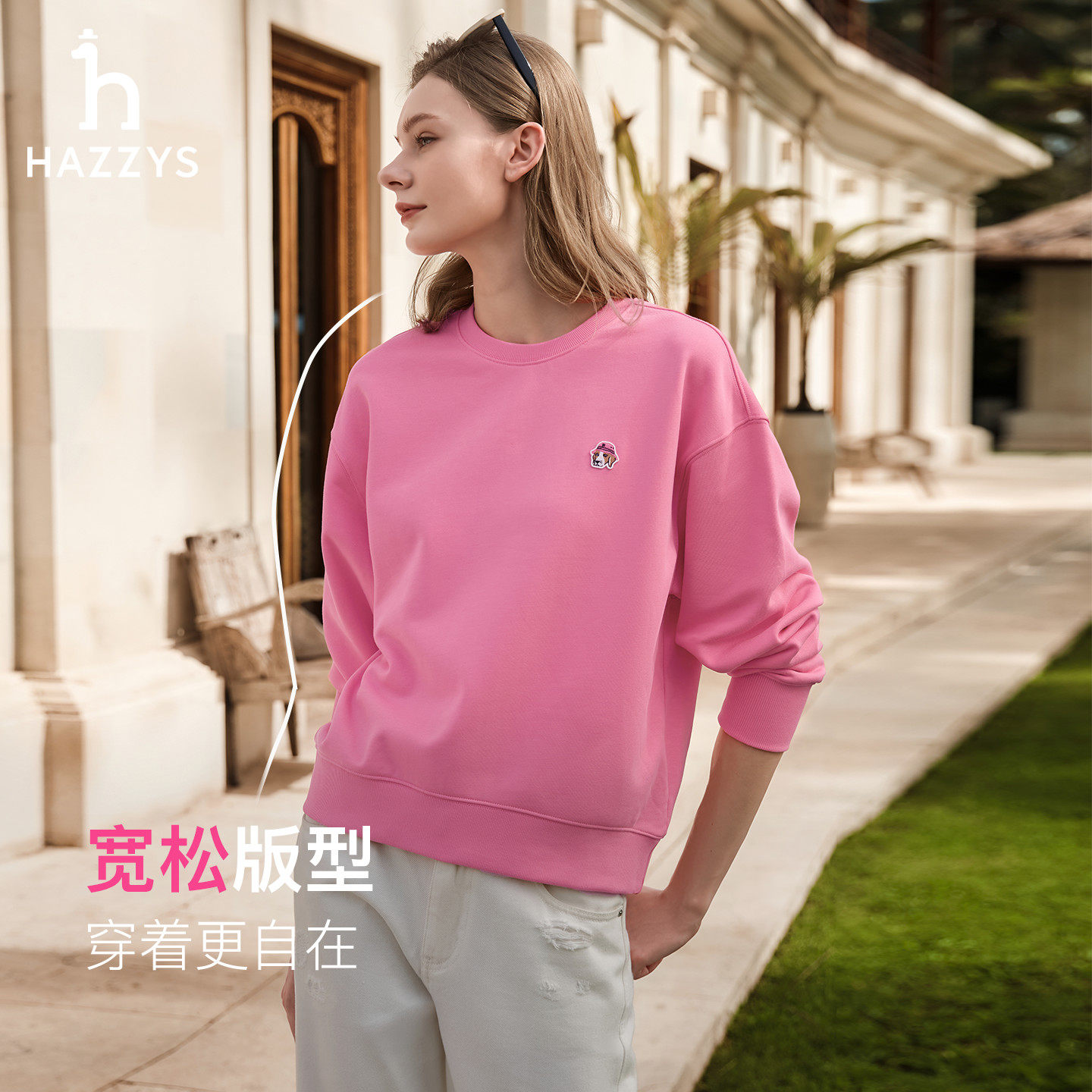 RAIVE2026春季BOHO玫瑰卫衣女宽松logo做旧效果印花短款圆领上衣