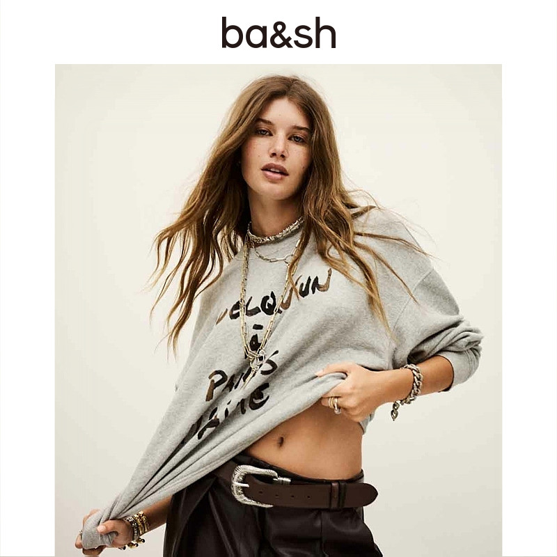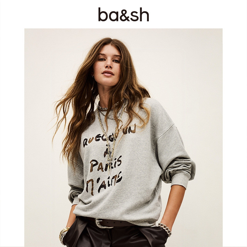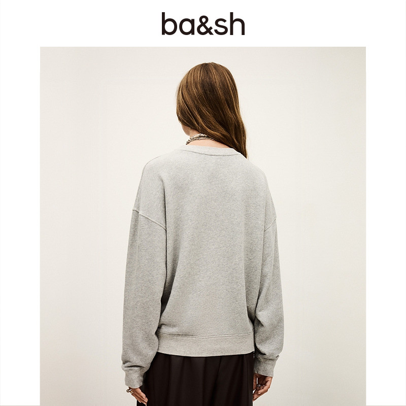 天猫bash春季简约字母印花灰色卫衣休闲基础女款套头长袖上衣1H25BRIC
