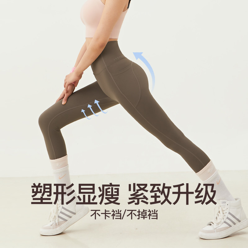 骆驼瑜伽裤女夏高腰裸感普拉提运动裤透气收腹紧身长裤提臀健身裤