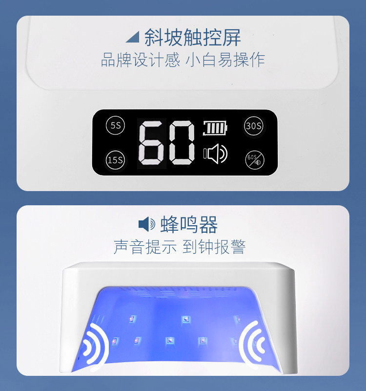 AMDMG专业速干蓄电不黑手紫外线光疗机,专为美甲店设计,高效固化指甲油胶,30秒快速定型,持久亮泽。采用先进UV-LED冷光技术,低热量输出,避免灼伤皮肤,真正实现“不黑手”体验。内置大容量锂电池,支持长时间续航,断电仍可继续使用,满足高强度营业需求。灯头覆盖面积广,双手可同时照射,提升工作效率。机身轻便小巧,操作简便,配备智能定时功能,安全省心。适用于各类光疗胶、甲油胶,是美甲沙龙提升服务品质的理想之选,兼顾专业性与便捷性,助力打造完美指尖艺术。