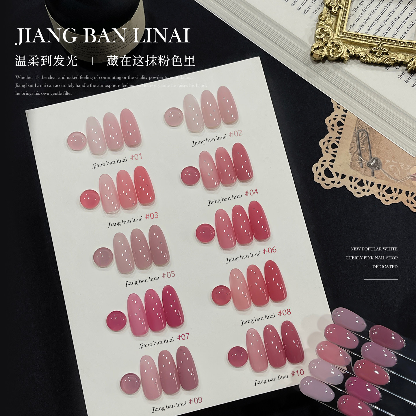 恩妮诗江坂丽奈系列2026年全新推出冰透樱桃裸粉色指甲油胶,专为美甲店高端定制打造。灵感源自春日樱桃初绽的柔嫩色泽,融合清透质感与细腻裸粉,呈现宛如天生好肤色的自然美感。高饱和度配方搭配快干科技,单层上色即显均匀通透,多层叠加更显层次丰盈。持久固色技术确保长达21天不脱落、不泛黄,满足专业美甲需求。瓶身采用环保材质,刷头精准贴合甲面,操作顺滑不拉丝。适用于光疗灯照固化,兼容主流美甲设备。这款冰透樱桃裸粉,是打造温柔高级感美甲的理想之选,深受美甲师与顾客青睐。