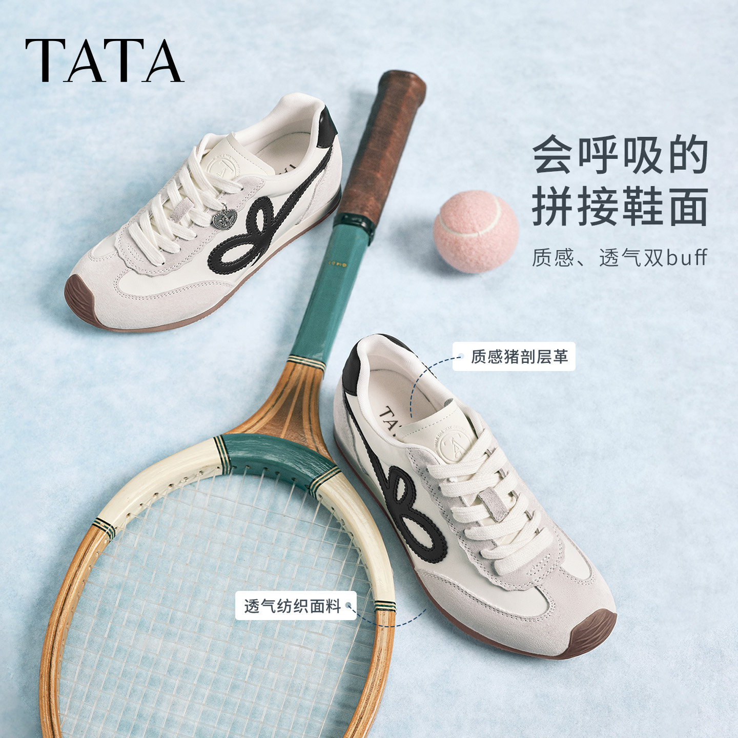 百丽厚底增高小白板鞋女2026新款两穿一脚蹬休闲运动鞋子F6N1DA