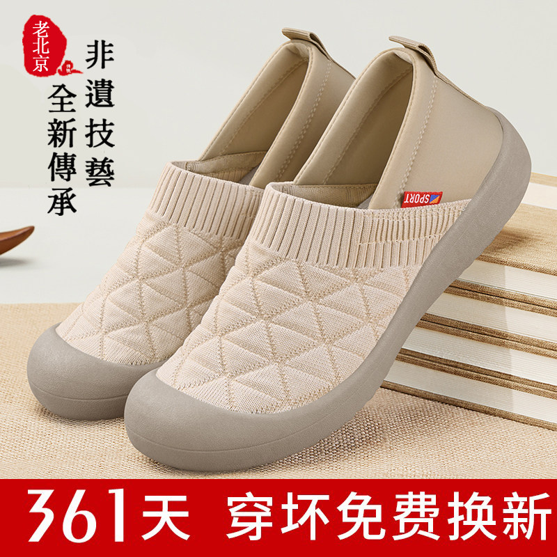 天老北京布鞋平底一脚蹬妈妈单鞋软底透气低帮爆款舒适防滑奶奶鞋女