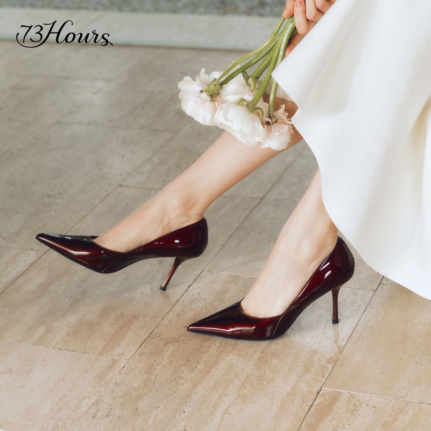 73hours女鞋Brittany春秋新款黑色不累脚高跟鞋女尖头通勤单鞋