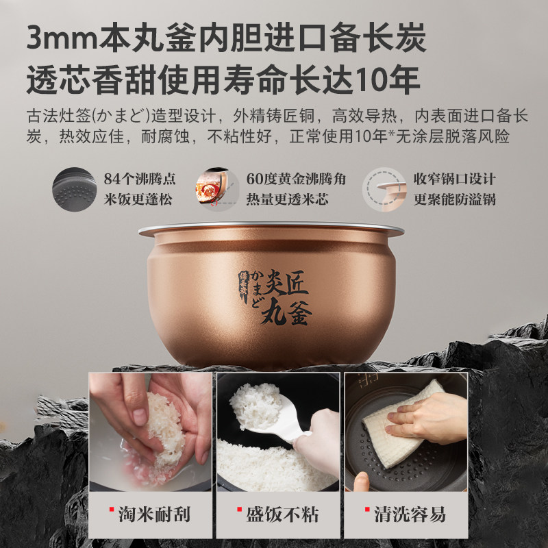 TIGER/虎牌 JPT-H10C智能压力IH土锅涂层电饭煲家用3L柴火饭3-4人