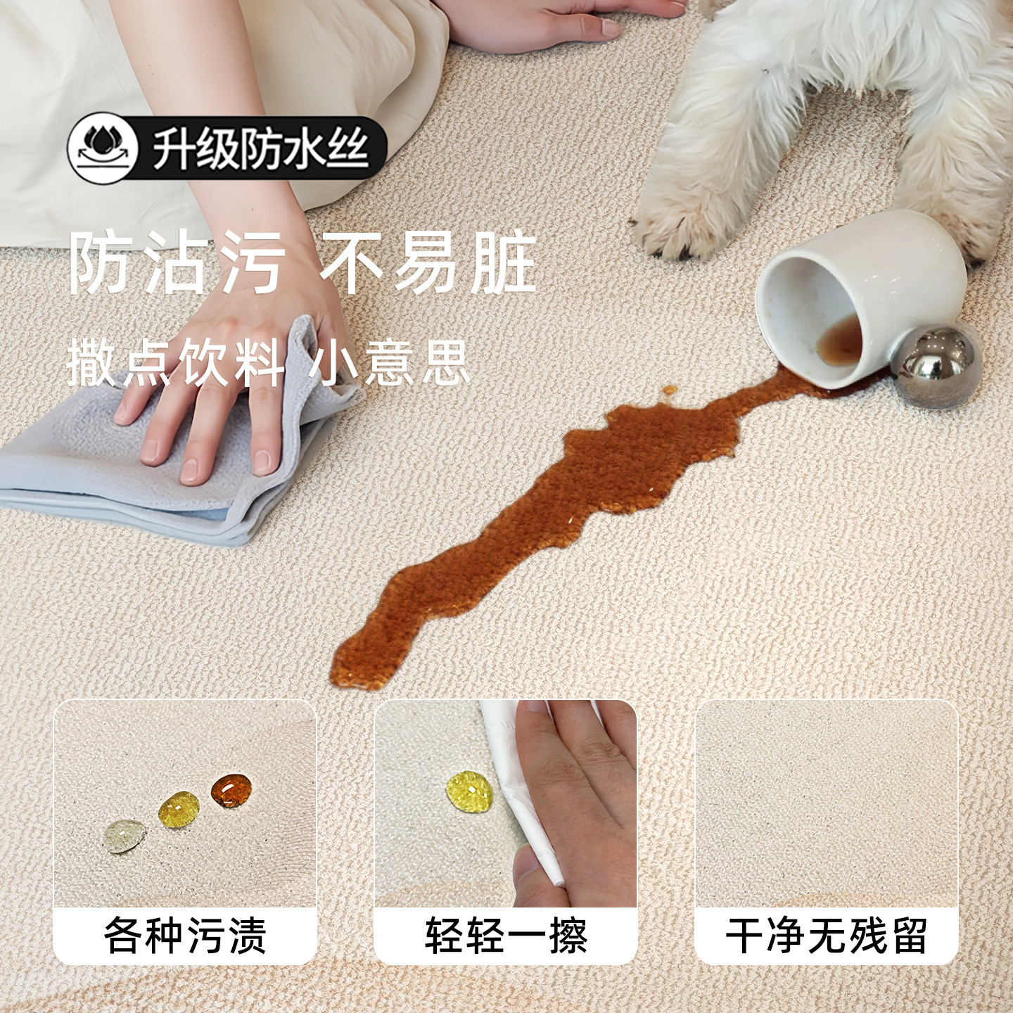 2025卧室床边地毯客厅简约无甲醛地垫防水耐脏飘窗垫子防滑免打理