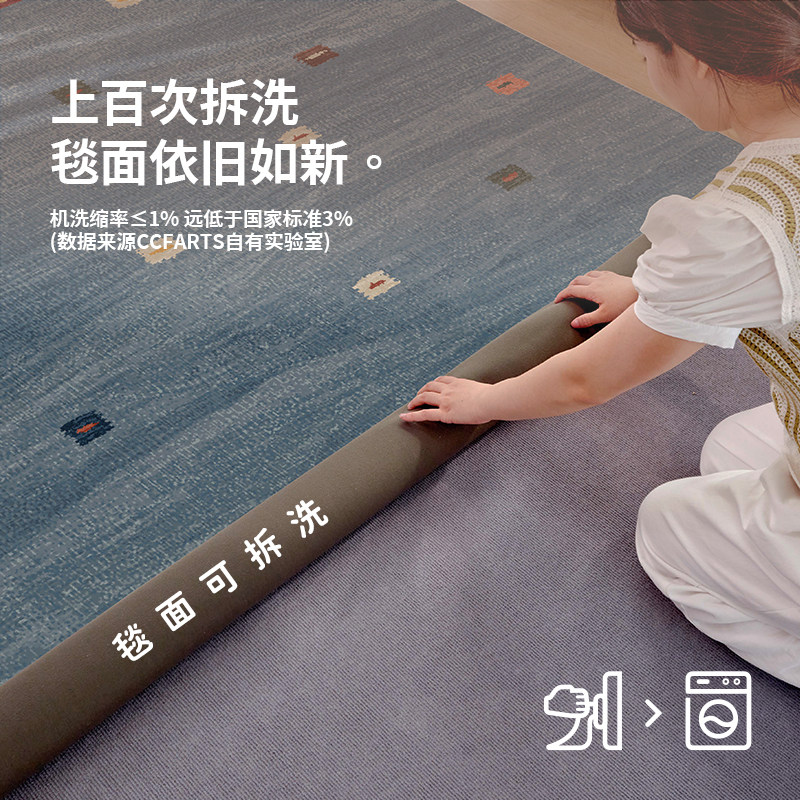 天猫CCF 凡湖的暮色可拆卸机洗无甲醛蓝色地毯客厅中古风书房地垫卧室