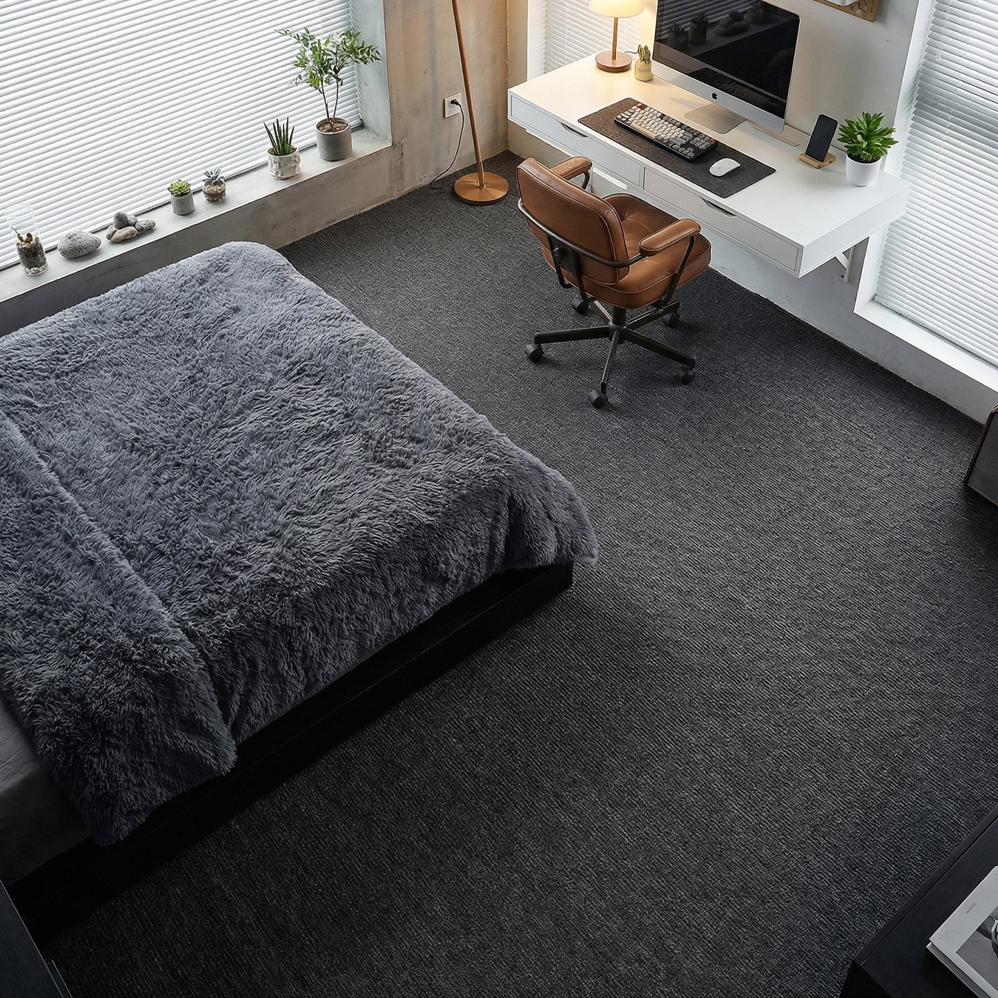 这款纯黑色地毯专为极简风格空间打造,适用于办公室、摄影棚、电竞房、客厅及卧室等多种场景。采用高品质耐磨面料,触感细腻,静音防滑,大面积满铺设计无缝衔接地面,营造整体统一的视觉美感。深邃纯黑色调不仅耐脏实用,更能突出家具与设备的质感,特别适合电竞氛围营造或专业摄影背景。背面防滑底衬确保安全稳固,不易移位。无论是追求极简美学,还是打造沉浸式工作环境,这款地毯都能完美融入空间,提升格调与舒适度,是现代家居与办公的理想之选。