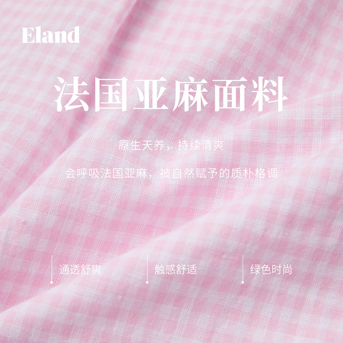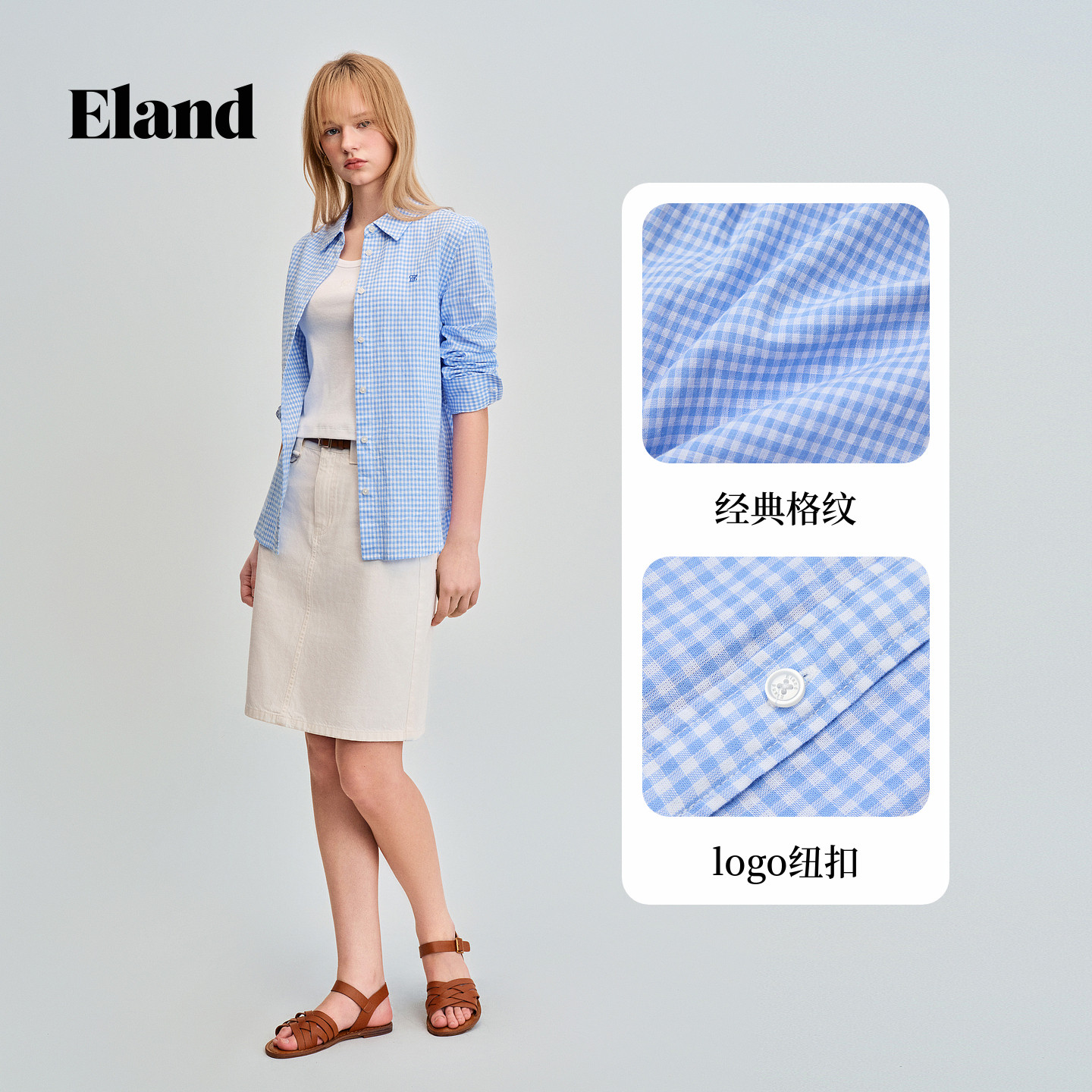 天猫【亚麻】Eland衣恋衬衫女时尚格纹翻领棉质长袖上衣2026夏季新款