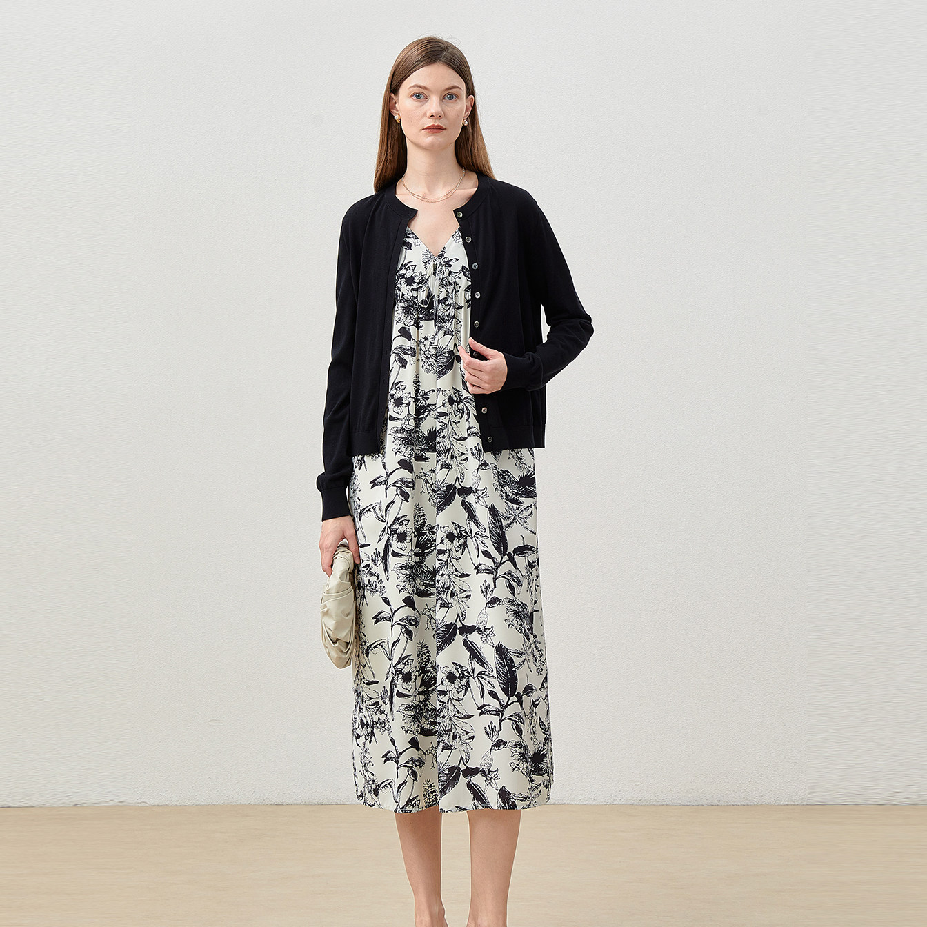淘宝*WCS07250 水墨枝叶花朵印花可机洗全棉衬衫/进口料吊带连衣裙