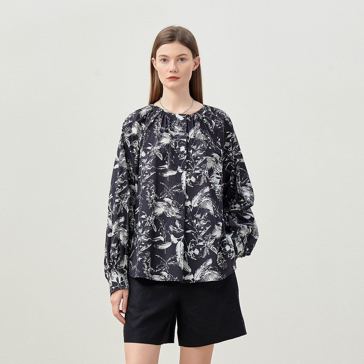 天生贵气!日系高端通勤圆领灯笼袖衬衫女春季休闲OL气质长袖上衣