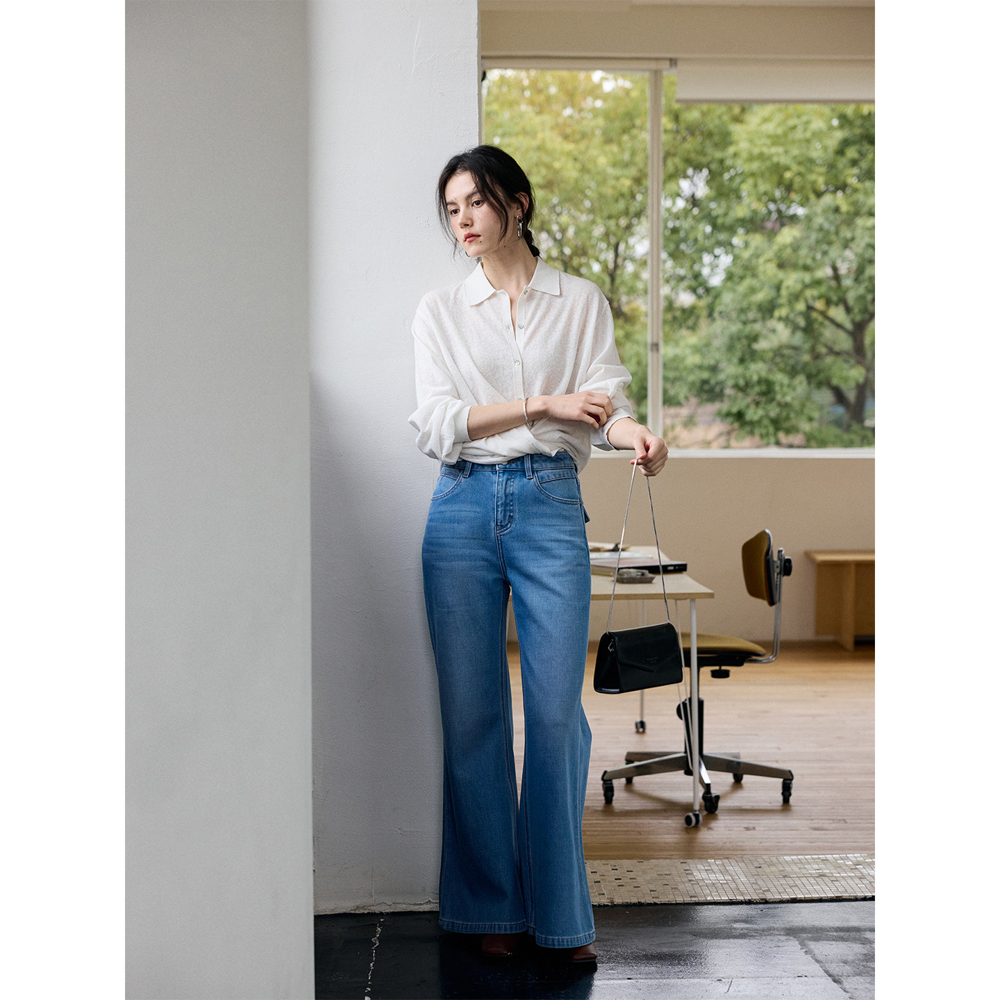 ONLY2026春季新款莱赛尔轻薄朦胧透感宽松纯色优雅喇叭袖衬衫女