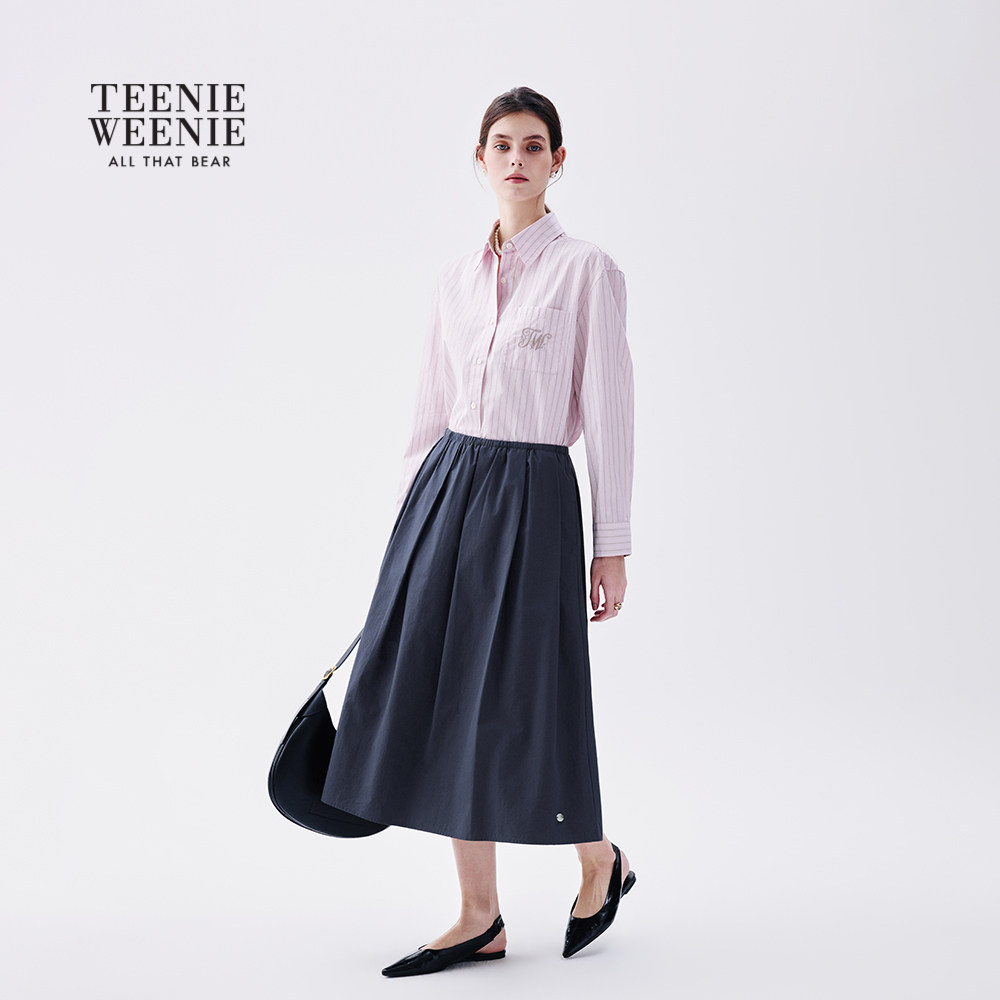 天ONLY2026春季新款轻薄透感抽绳下摆宽松落肩翻领长袖衬衫上衣女