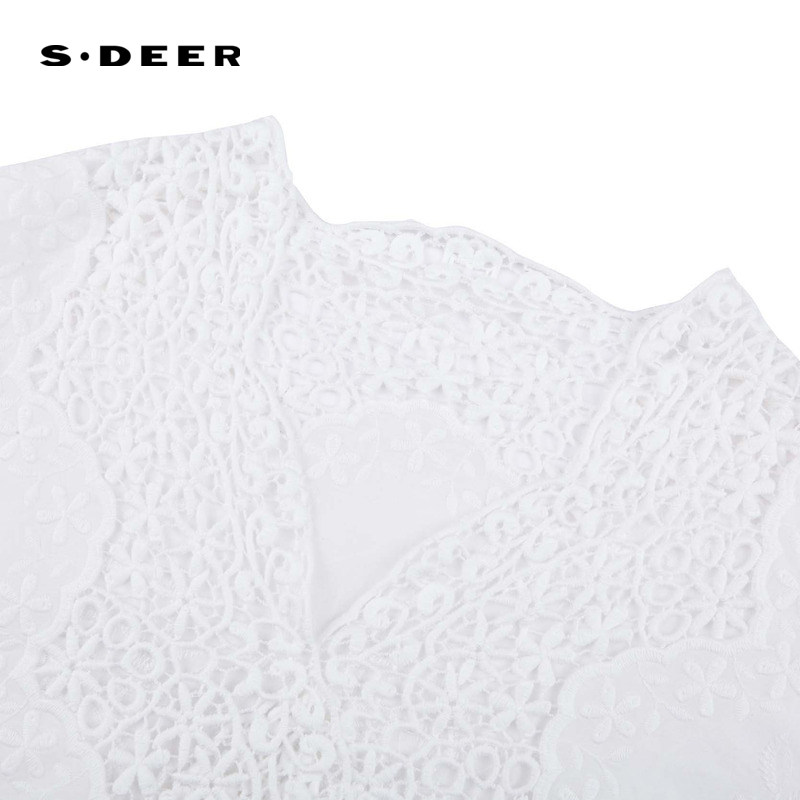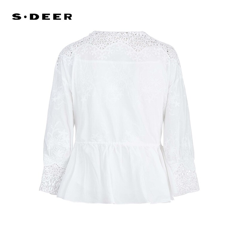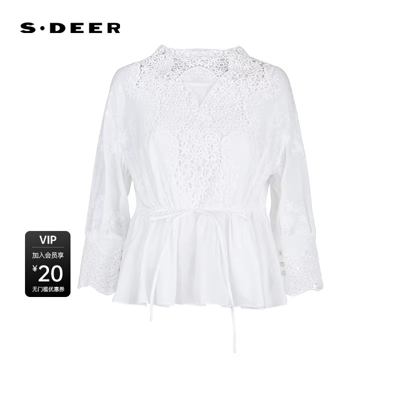 天猫sdeer圣迪奥女夏季清水系田园风V领收腰绣花两件套衬衫S252Z3224